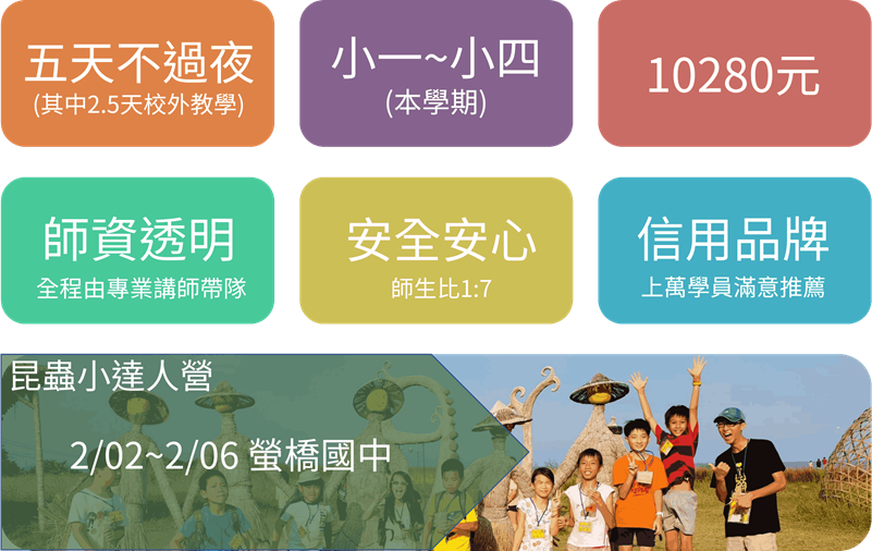 讓孩子走進昆蟲的奇幻世界,探索六足生物的奧秘!五天的昆蟲小達人營,結合生態觀察與手作活動,帶孩子從校園到農場,從活體觀察到仿生玩具,感受科學的趣味與創意!這不僅是一趟知識之旅,更是一場讓孩子動手做中學、激發好奇心的冒險!