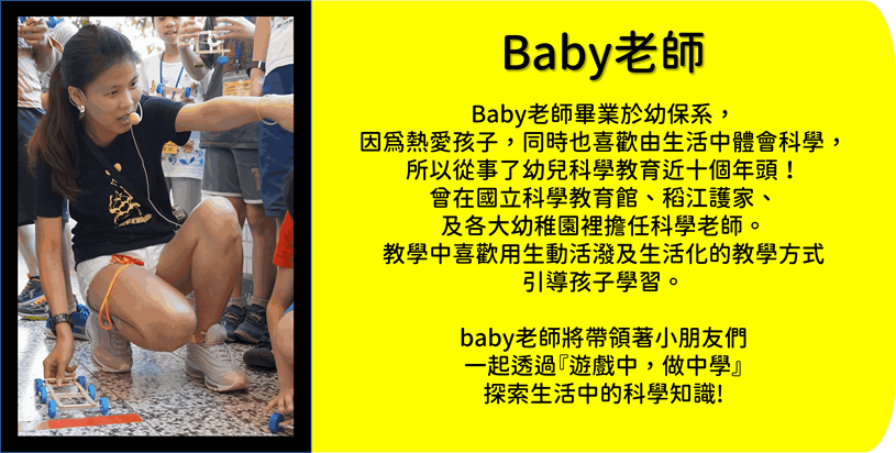 優質的課程需要深厚的專業背景支撐。本課程由兒童科學教育權威、暢銷作家許兆芳老師設計,他深諳如何將枯燥的物理化學轉化為孩子聽得懂、玩得起的「魔法」。 搭配教學經驗豐富、能精準掌握學童心理的 BABY 老師領軍,確保了教學現場的互動品質。科學教育不只是傳遞知識,更是「熱情的感染」,優秀的師資能點燃孩子對未知事物的好奇火種。
