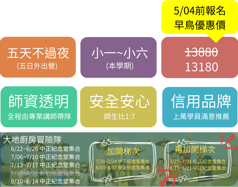 當孩子們大口品嚐自己親手採集、烹調的料理時,那份無可取代的成就感,會讓他們真心愛上食物!我們期盼透過這些充滿樂趣的實作體驗,不僅讓孩子練就一身廚房真功夫,更能培養出對健康飲食的熱情,為未來的獨立生活打下最堅實的基礎!