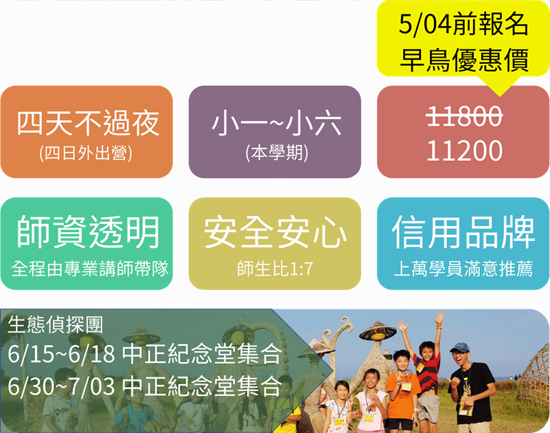 準備好讓孩子成為小小生態偵探了嗎?今年最精彩的生態探險營隊即將展開!在這四天的旅程中,孩子們將深入熱帶雨林、森林步道、潮間帶秘境與溪流埤塘,化身為生態偵探,解開一個個大自然的謎題!從食蟲植物的神秘世界到螞蟻帝國的社會結構,從潮間帶的熱鬧生態到溪流中外來種的追蹤,每一站都是充滿驚奇的探索之旅。孩子們不僅能親手種植食蟲植物、DIY鹹鴨蛋、解剖小卷,還能透過科學觀察與記錄,學習如何成為一位真正的公民科學家!這不僅是一場生態探險,更是一場培養觀察力、好奇心與科學精神的成長之旅!