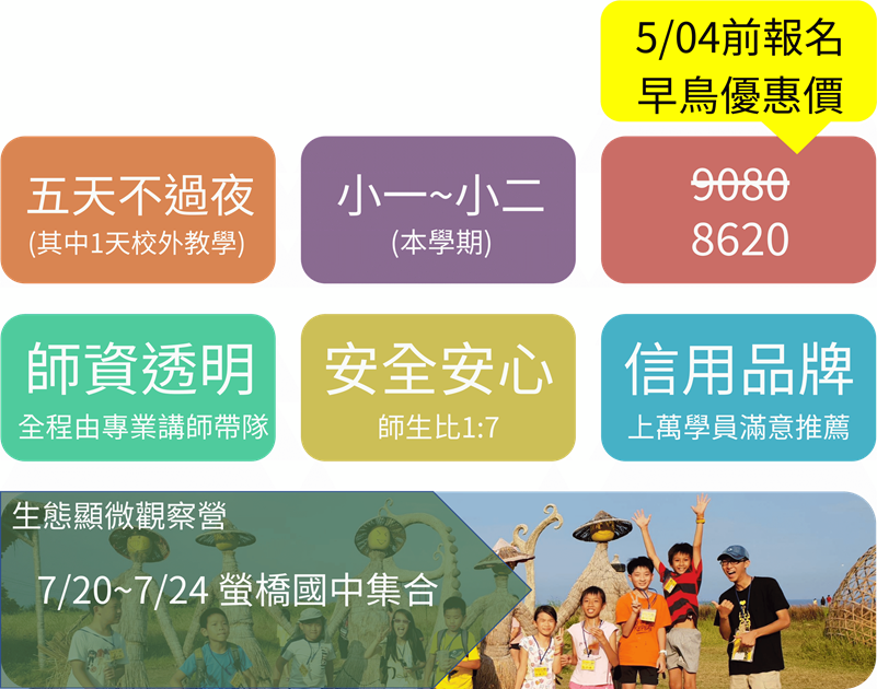 讓孩子走進微觀的奇幻世界,探索植物、昆蟲與生態的奧秘!五天的生態顯微觀察營,結合顯微技術與戶外探險,帶孩子從水生植物到昆蟲生態,感受科學的趣味與創意!這不僅是一趟知識之旅,更是一場讓孩子動手做中學、激發好奇心的冒險!