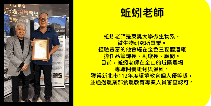 蚯蚓老師是金山地區的專業農夫,同時也是農業部認可的食農教育專業人員。在課程中,他將帶領孩子們從農夫的角度,認識我們平常食用的食材,分辨品質與好壞,並分享現代農業的特別之處。